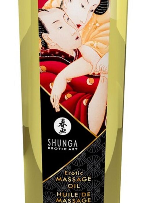 Luksusowy Erotyczny Olejek do Masażu Irresistible od Shunga o zmysłowym kwiecistym, owocowym zapachu Azji, który pobudza zmysły podczas masażu solo lub partnerskiego i sprawia, że chcesz więcej! Wegański olejek do masażu wykonany jest w 100% z naturalnych olejów tłoczonych na zimno i zawiera pielęgnującą skórę witaminę E. Delikatnie i łatwo sunie po skórze, nie pozostawiając nieprzyjemnego tłustego uczucia ani pozostałości. Wręcz przeciwnie, pozostawia skórę jedwabiście miękką! Ponadto jest bardzo bogaty dla wielu zmysłowych i namiętnych masaży całego ciała.