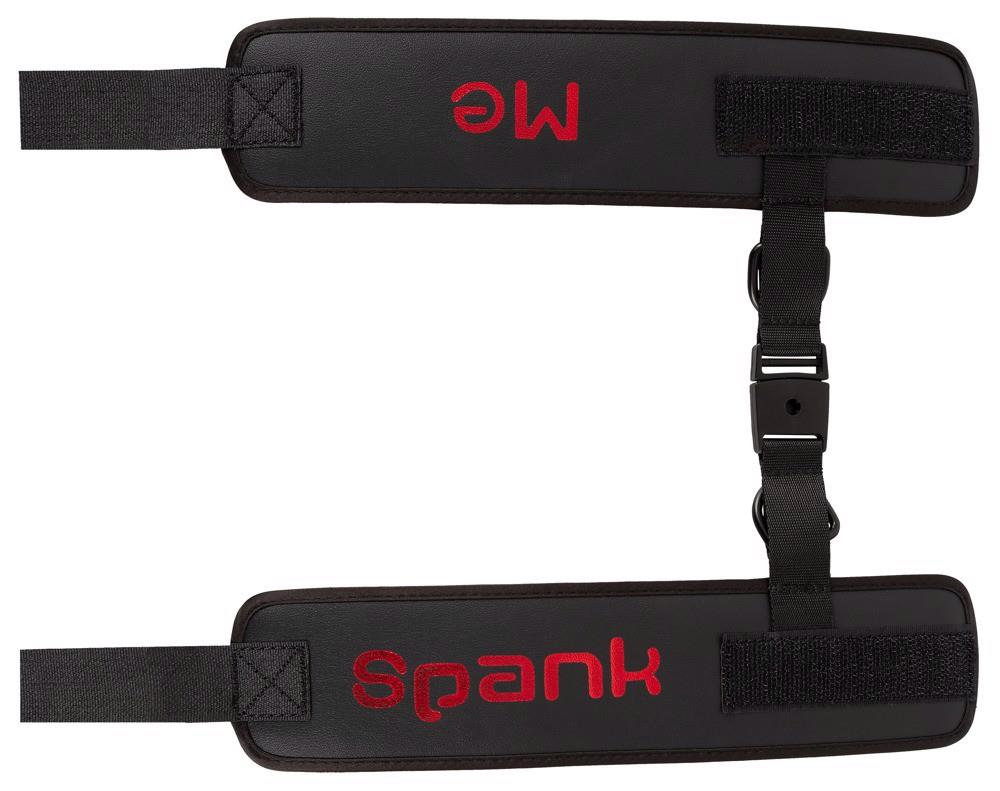 Miękkie kajdanki Spank me-Cuffs marki Bad Kitty połączone krótką plecioną opaską z praktycznym zapięciem na klips. W kolorze czarnym z czerwonym napisem Spank me. Mankiety regulowane w obwodzie za pomocą rzepów, szybkie w zakładaniu i zdejmowaniu.