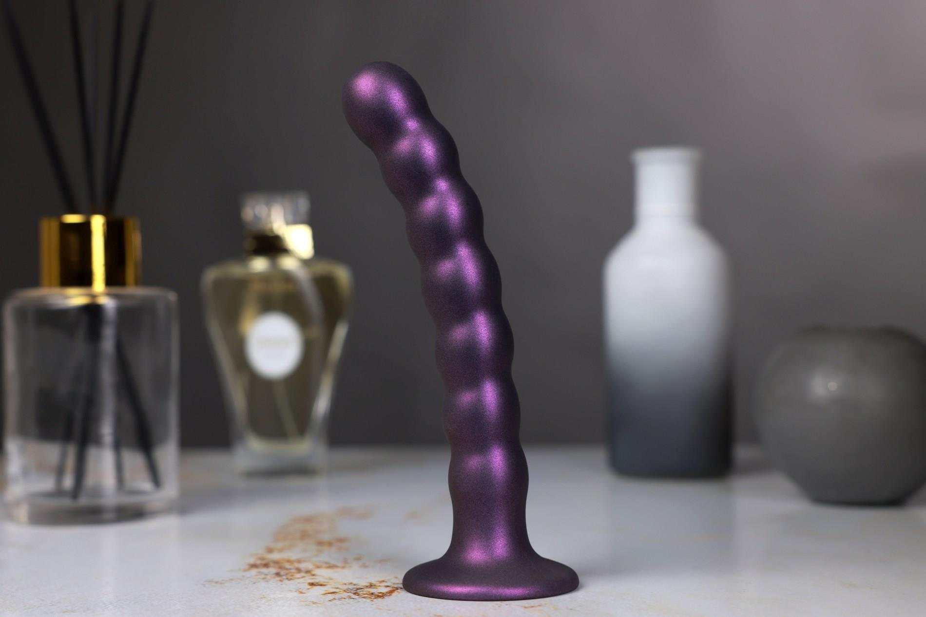 The 8″ / 20,5 cm Beaded Silicone G-spot Dildo, with its strong suction cup and beautiful metallic color, is in a class of its own. Whether you are going solo, with your partner or even using it with a strap-on, explore new pleasures with these beautiful Ouch! Premium silicone and liquid silicone dildos. Pairs perfectly with the Ouch Strap-on Panties.