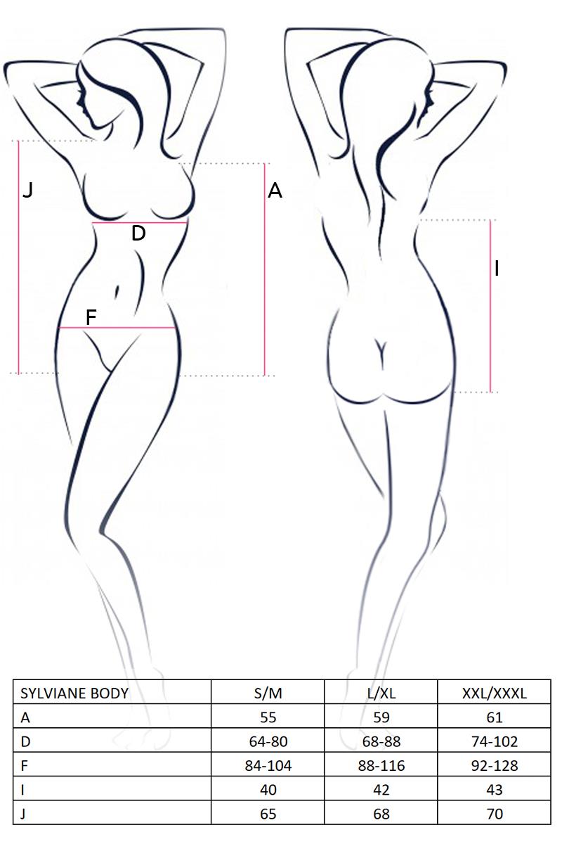 Zmysłowe body w kolorze bordo, wzbogacona o koronkę – pięknie okala kobiece ciało. Dopasowany materiał, koronka oraz wycięcie na brzuchu w sposób ponętny prezentują walory kobiety. Klasyczna elegancja połączona z współczesnym lookiem – tak można opisać Sylvianę.
