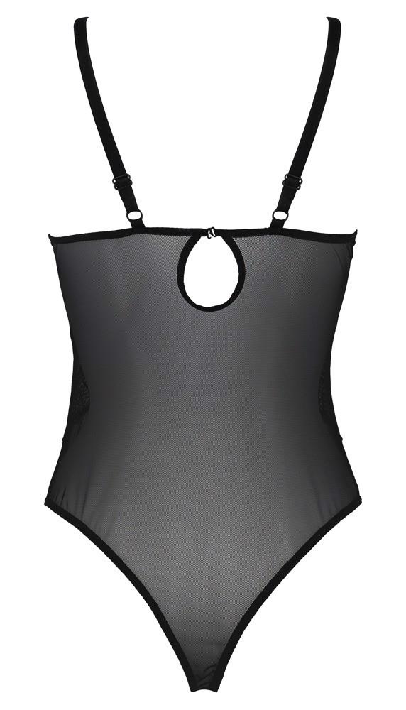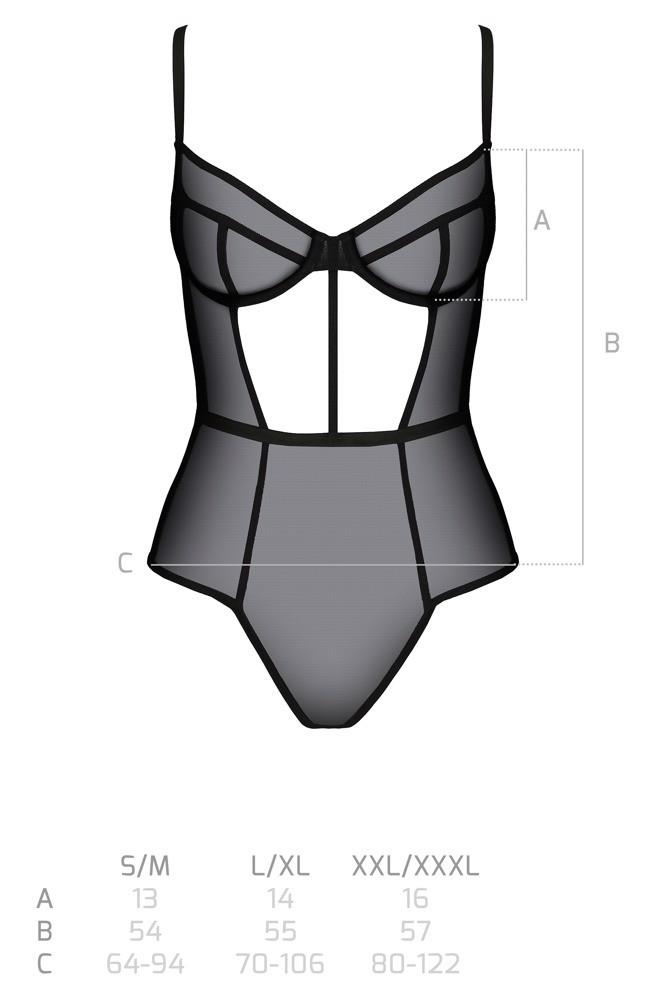 Miękkie i milutkie body Varella z kolekcji Eco marki Passion wykonane w całości z elastycznego powernetu. Uwodzicielski styl Rio z wycięciem z przodu, wysokimi wycięciami na nogawkach i zapięciem na haftkę w kroku. Miseczki są na fiszbinach, a ramiączka można regulować w celu idealnego dopasowania. Małe okrągłe wycięcie z tyłu pod zapięciem na 1 haczyk.