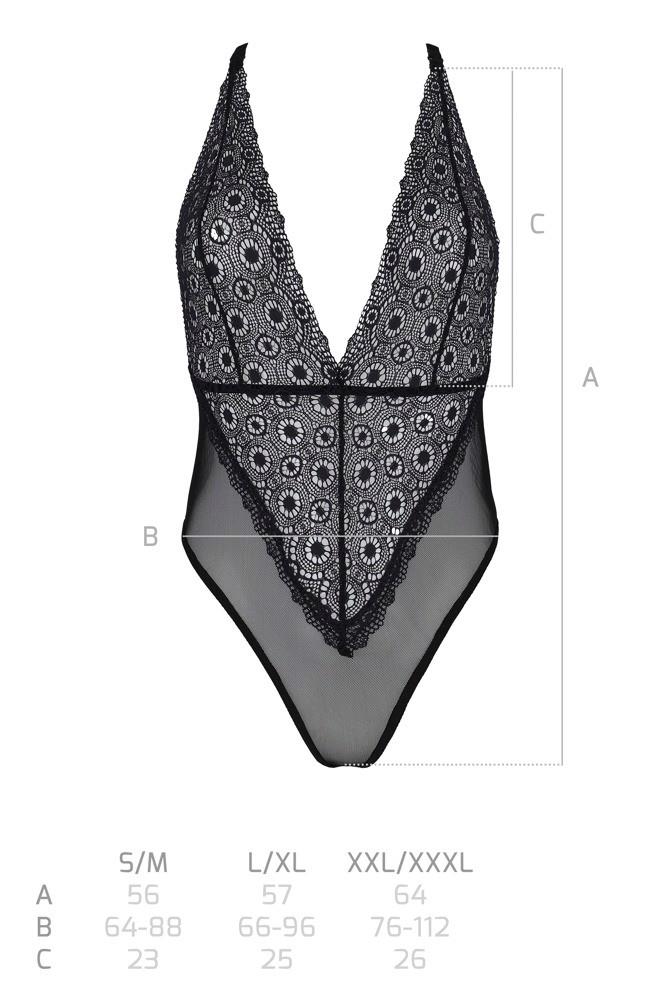 Miękkie i milutkie body Zinnia z kolekcji Eco Collection marki Passion wykonane z elastycznej siateczki z fantazyjną koronką z przodu. Uwodzicielski fason Rio z bardzo głębokim dekoltem i zapięciem na haftki w kroku. Ramiączka krzyżują się w pierścieniu z tyłu i są regulowane, co umożliwia idealne dopasowanie.