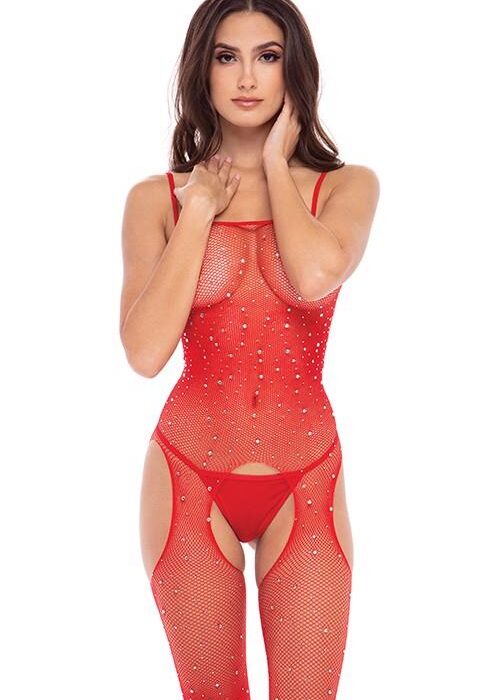 Bodystocking Kirae otwarte czerwone One Size