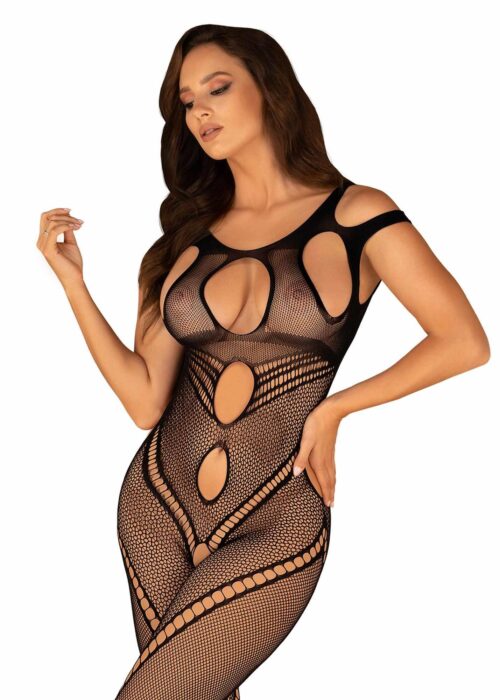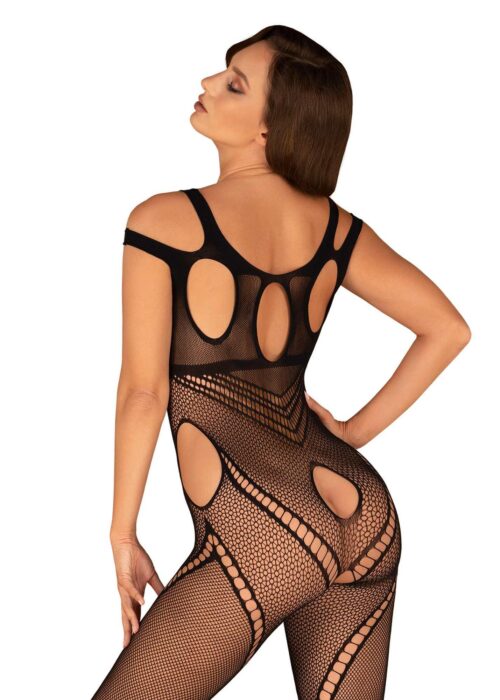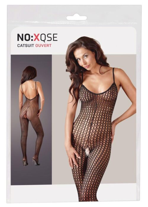Siateczkowy kombinezon wykonany z czarnej elastycznej siateczki. Tutaj nic nie jest pozostawione wyobraźni. W kroku i na boki prowokacyjnie otwarte. Wąskie paski. Ze stopą. Produkowane bez szwu. 100% poliamid.