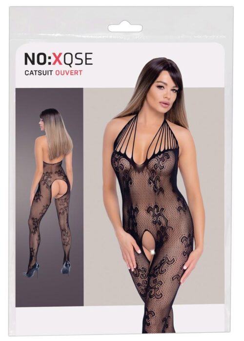 Wyrafinowany kombinezon marki NO:XQSE wykonany z delikatnej siateczki z wplecionymi ornamentami. Elastyczne paski nad dekoltem łączą się w halterneck – tył pozostaje ekscytująco swobodny. W kroku znajduje się obszerne rozcięcie, które umożliwia intymną spontaniczność. Wykonane bezszwowo, miękkie i rozciągliwe dla wysokiego komfortu noszenia. Ze stopą.