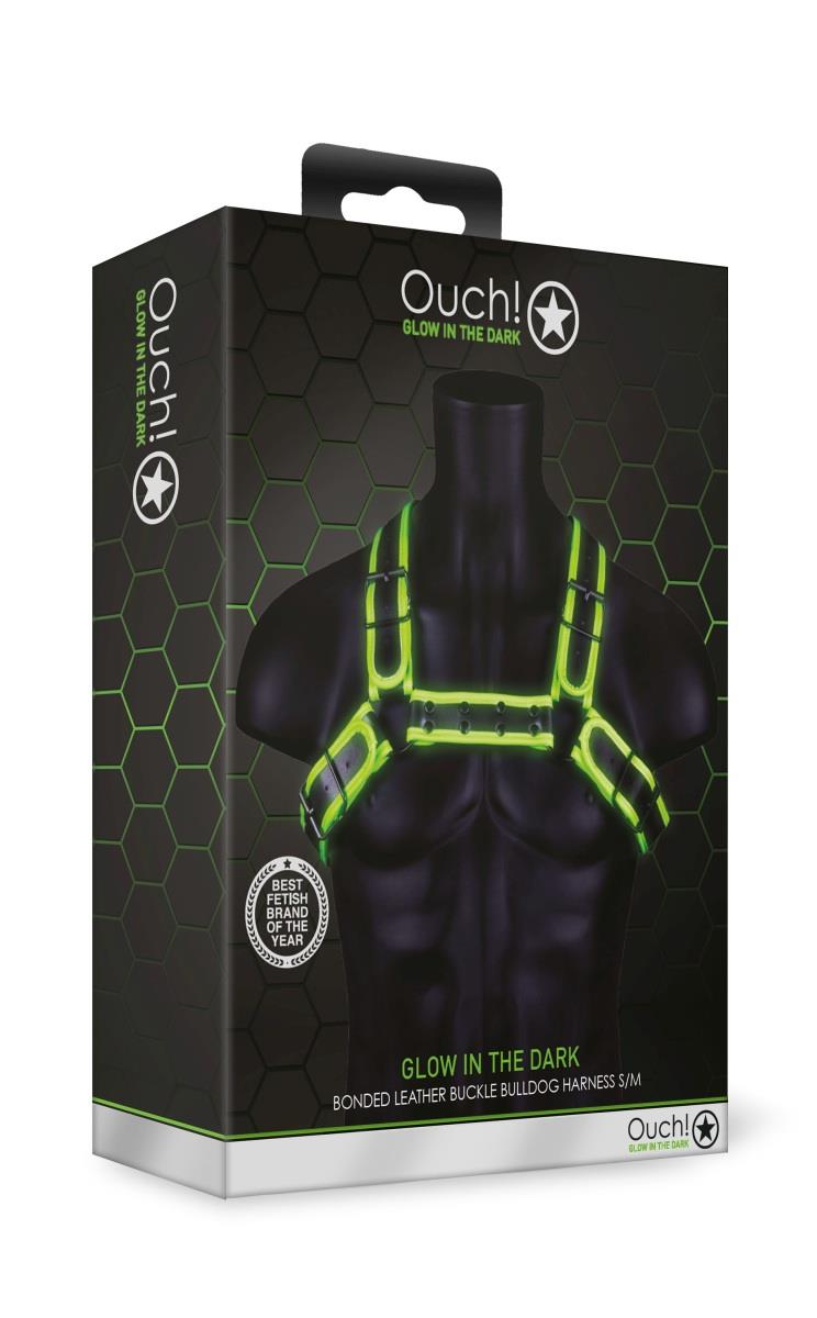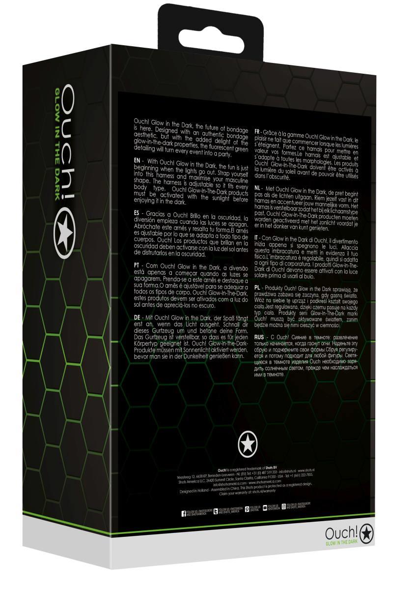 Ouch! Glow in the Dark. Zaprojektowane zgodnie z oryginalną estetyką bondage, ale z dodatkiem rozkosznego świecenia w ciemności, fluorescencyjne elementy w barwie ciemnej zieleni zmienią każdą sesję w imprezę.
