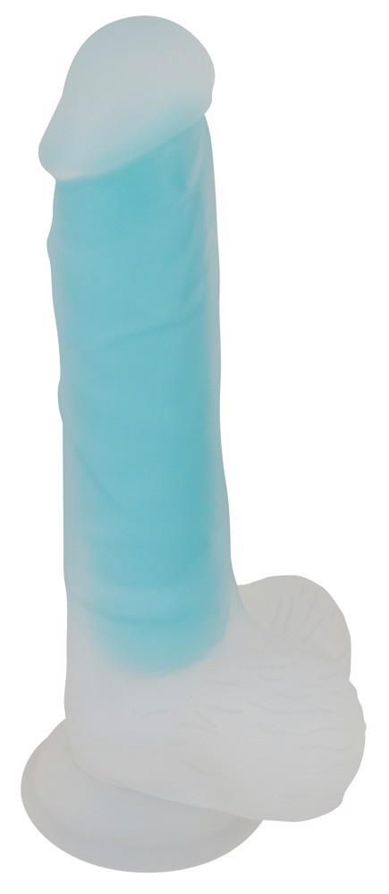 Mleczno-transparentne Glow in the Dark naturalne dildo od You2Toys z turkusowym rdzeniem, który świeci w ciemności. Jak oryginalny penis z chwytnymi jądrami, wydatną żołędzią i żyłkami. Wykonany bezszwowo z nieporowatego płynnego silikonu o super miękkiej powierzchni, przesuwa się po skórze jak za dotknięciem czarodziejskiej różdżki – i to w okolice intymne. Z praktyczną podstawą ssącą dla przyjemności bez użycia rąk.