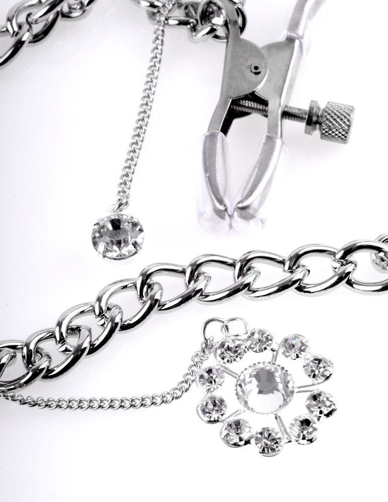 Te zaciski do sutków są wykonane do szczególnie szlachetnych gier fetyszowych! Możesz cieszyć się słodkim bólem w sutkach lub po prostu lekkim uciskiem, ponieważ same zaciski są łatwe do regulacji. Element dekoracyjny na łańcuchu łączącym uzupełnia projekt i zaprasza do ekscytujących gier.