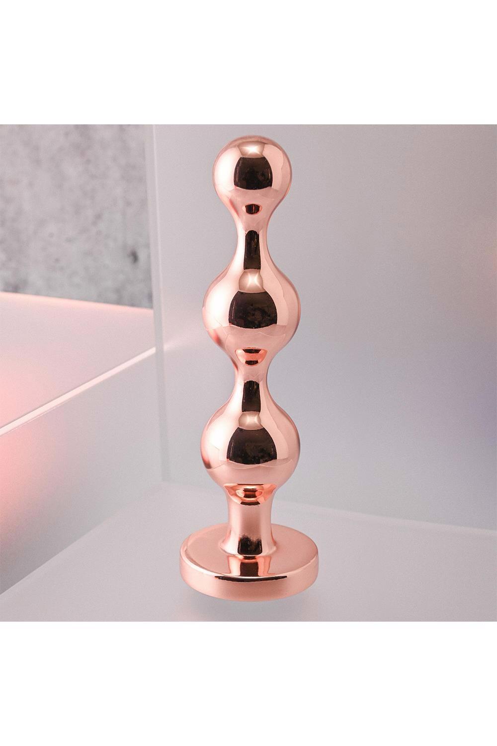 Big, sleek & stylish – everything you want in a body-safe metal plug! Savor the bulbous, nonporous, shiny shaft with its incremental shapely bulb design – and the stylish sparkling black gem at the base! Discover how this shapely metal sculpted plug can enhance your erotic play time and try sensation play by warming or cooling your plug first with water. Large rose gold beaded metal plugIncremental 3-bead shaft designCool or warm with water for sensation playStylish sparkling black gem baseMade from body-safe nonporous aluminum alloyGem made from durable ABS plasticWide safety baseWaterproofPhthalate & latex freeL x D x W: 5.3 x 1.57 x 1.57 inch / 13,4 x 3,9 x 3,9 cmInsertable length: 4.75 inch / 12,0 cmInsertable width: 1.1 inch / 2,8 cm Gender X The toy line Gender X is a full collection of innovative shapes and buzzworthy devices that enrich playtime for everyone. These inclusive toys are all about what you could call a ‘universal imagination’. It’s a ‘wall for all,’ where the shapes and functions speak for themselves, allowing customers to discover their own pleasure, no matter what that looks like for them. Because some people use G-spot toys for their prostates, and vice-versa, so why not have a line that doesn’t impose any particular application at all! People can recognize the shape they want and make their own decision about how they’ll use it — that’s the key to Gender X.The line includes an array of shapes, sizes and categories, from wands to quadruple stimulators, neon-clear plugs and strokers. Kits, remote toys and partner play products are also included. The line emphasizes form and function over gender suggestion or niche marketing. The simple, unspecific packaging is the point. There is no prescribed way to play — find what you like and choose your own adventure. Gender X is purely user-driven, leaving possibilities open-ended. The result is a welcoming brand that’s less about gender and more about the toys themselves — and the toys are excepti