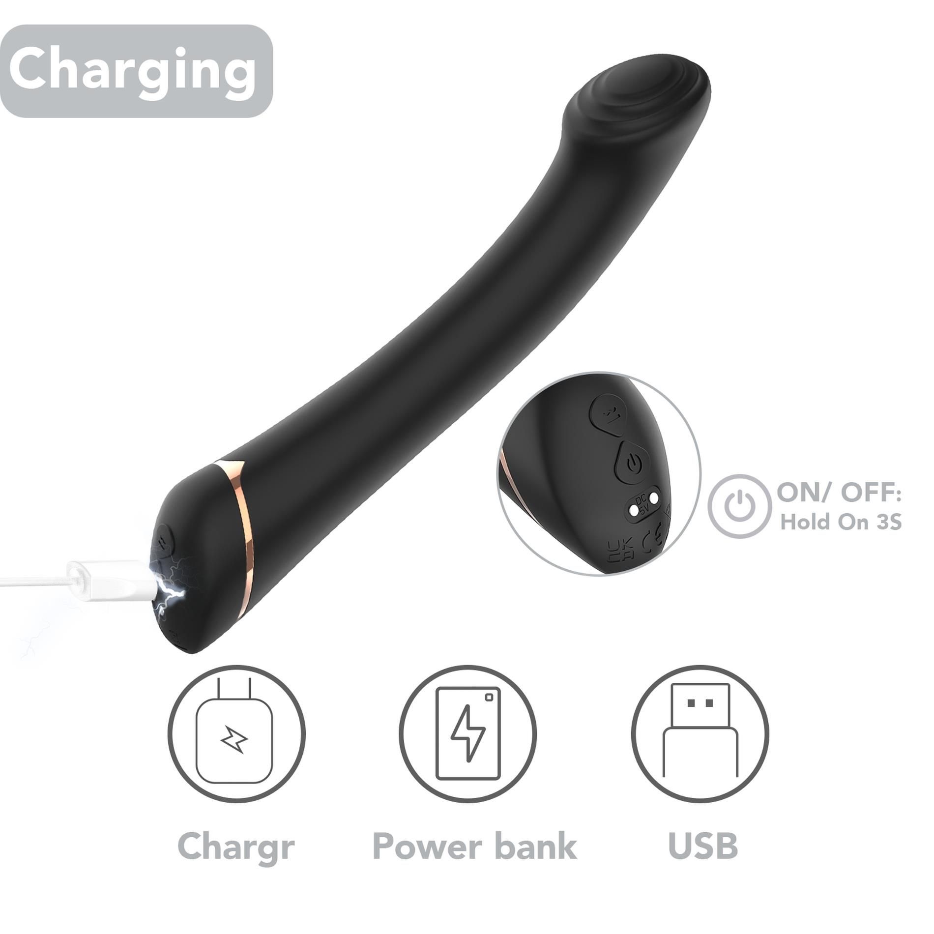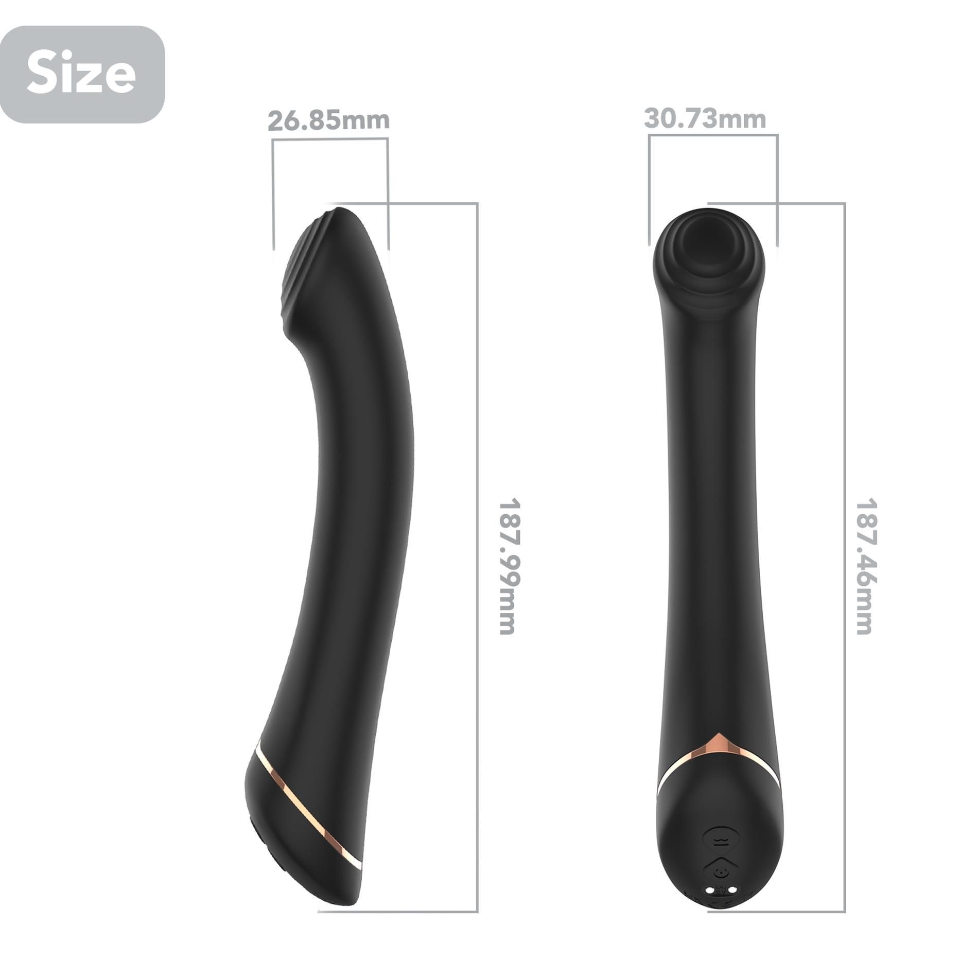 Ergonomicznie idealnie zakrzywiony wibrator ze spłaszczoną końcówką specjalnie do ukierunkowanej stymulacji punktu G. Miękki i jedwabisty, elastyczny silikonowy wibrator doskonale zagłębia się w dłoni.