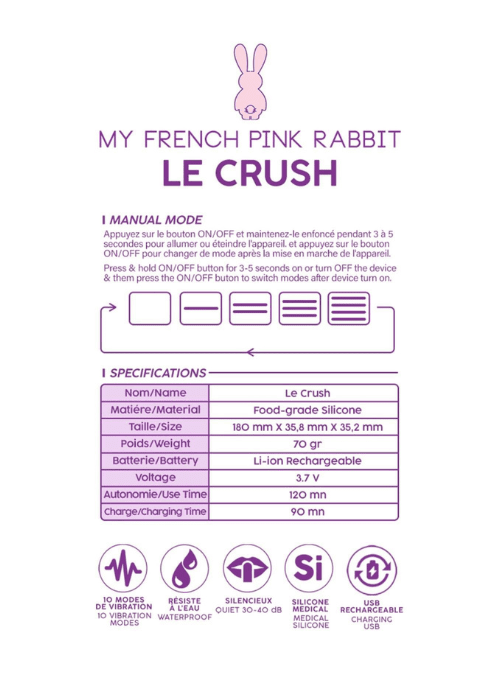 Jajko z aplikacją Le Crush Violet to wyjątkowy gadżet erotyczny dla kobiet, który przenosi przyjemność na nowy poziom. Dzięki współpracy z francuską aplikacją PLAYTOY, umożliwia kontrolę wibracji z bliskiej odległości lub z drugiego końca świata – idealne dla par na odległość.