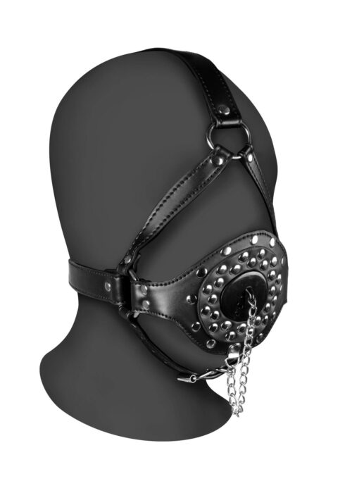 Open Mouth Gag Head Harness with Plug Stopper – Black