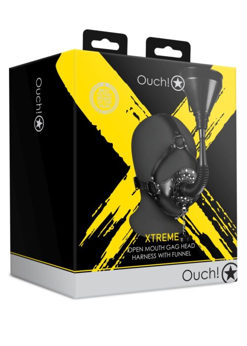 Open Mouth Gag Head Harness with Funnel – Black