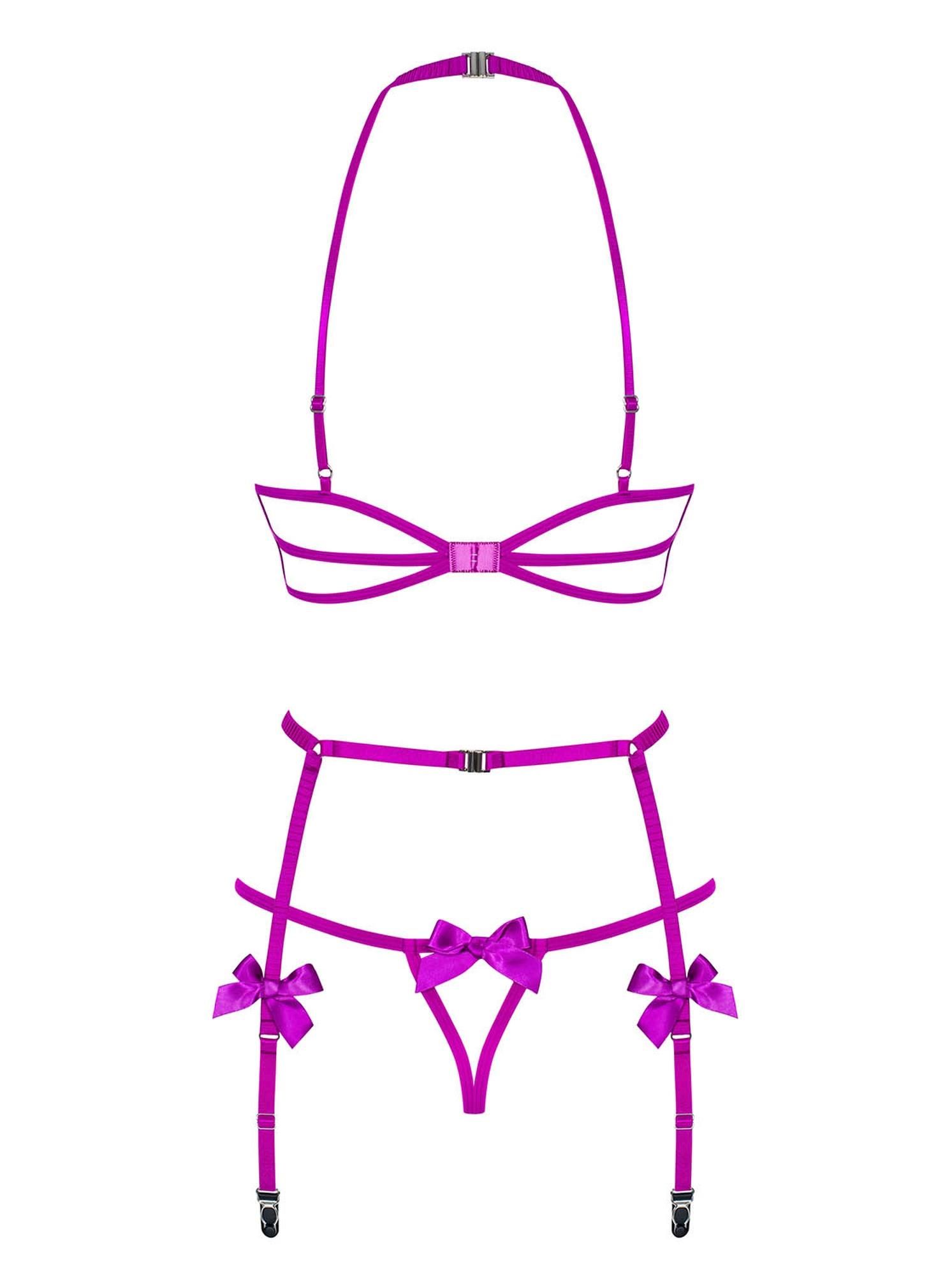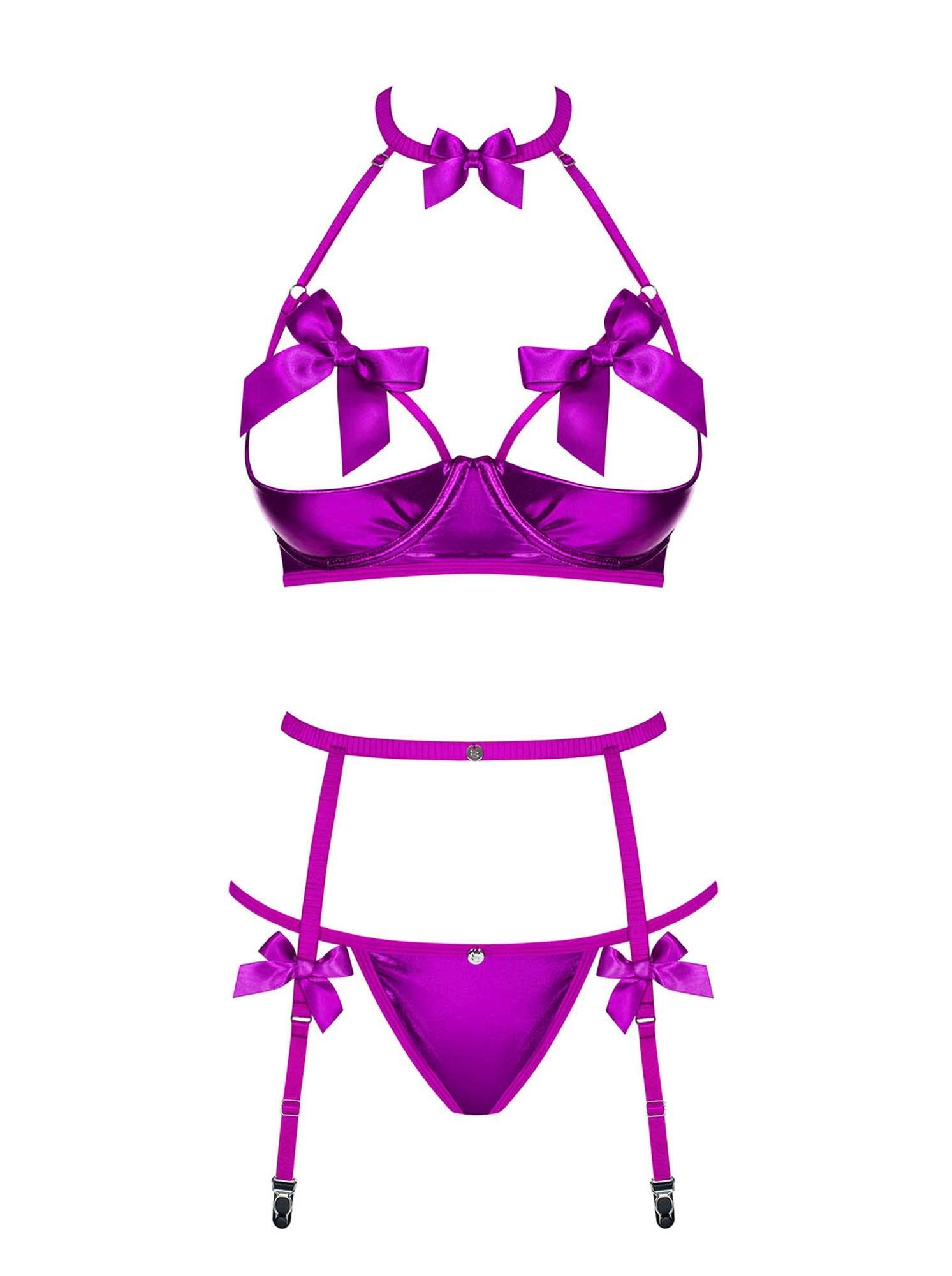 Komplet bielizny Delishya 3-częściowy fioletowy L/XL