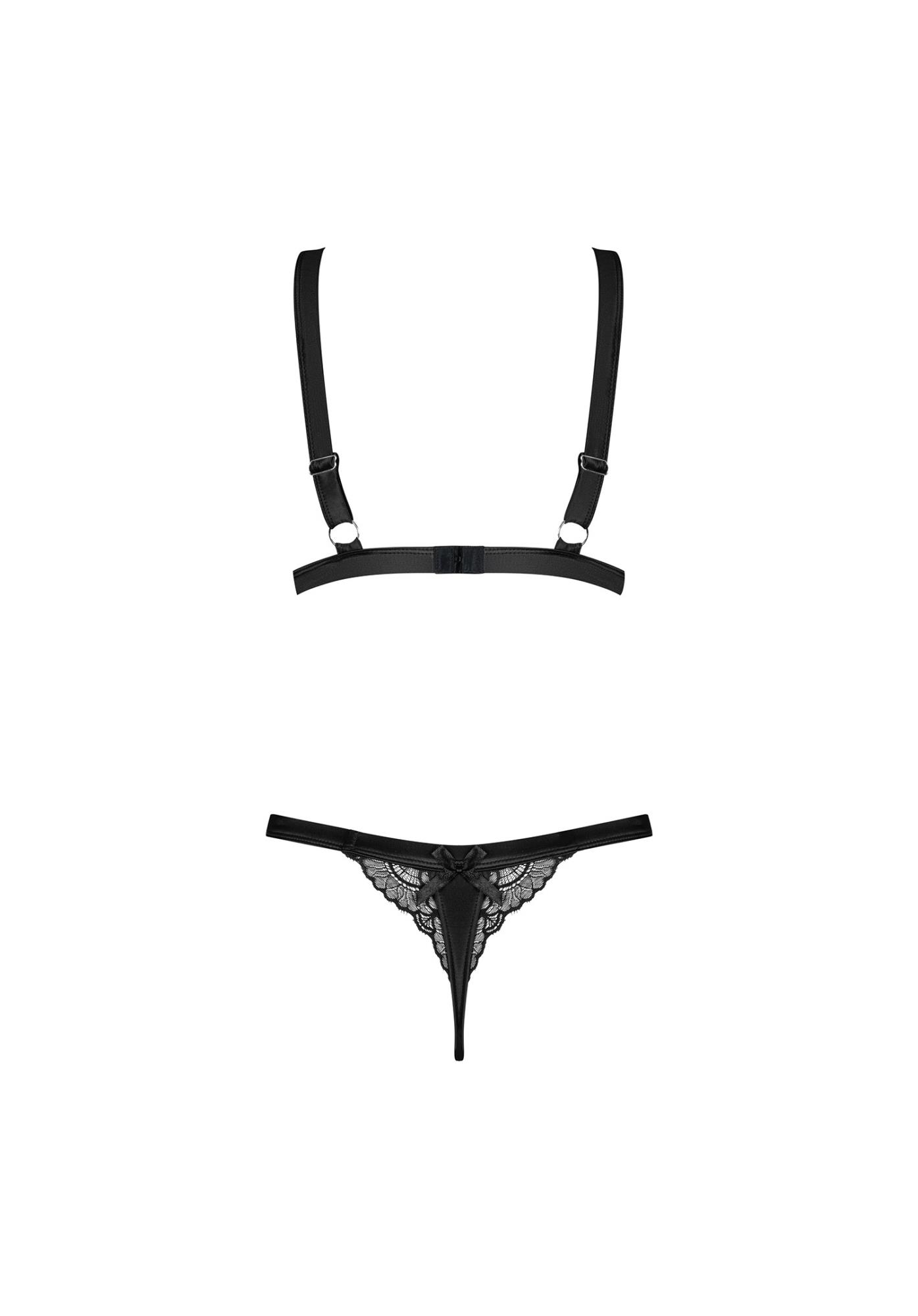 – biustonosz i stringi wykonane z satynowej tkaniny połączonej z prześwitującą koronką