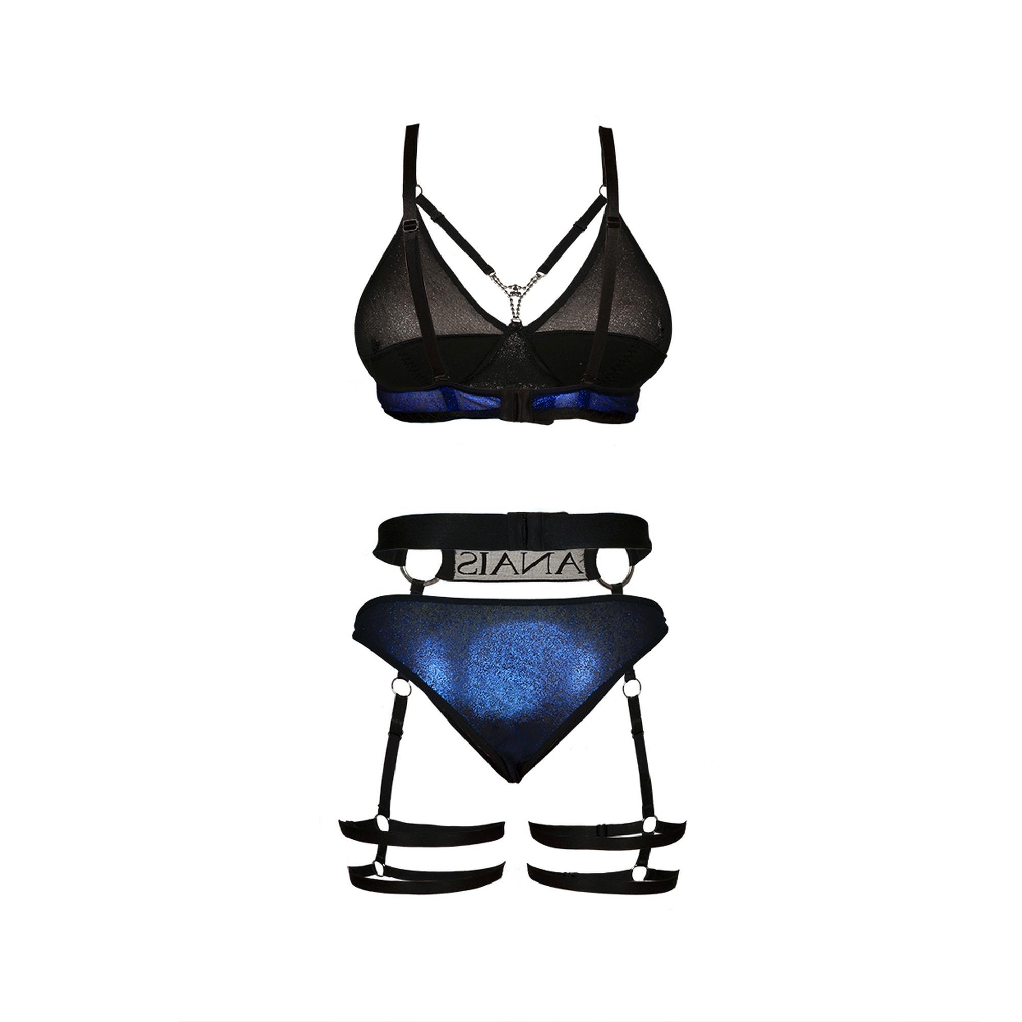 Olśniewający komplet HARLO blue set prime . Unikalny i niezwykle delikatny biustonosz , majteczki oraz pas do pończoch .