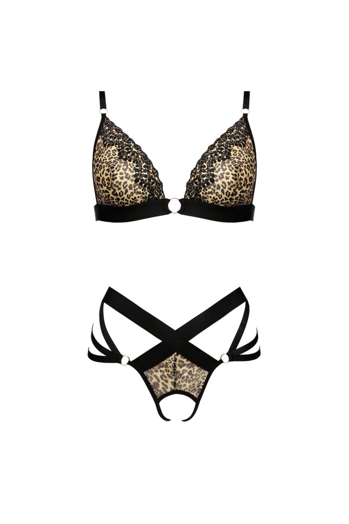 Mamy dla Ciebie seksowny , dwuczęściowy komplet. Delikatny tiul , zmysłowy haft i niebanalny wzór panterki uwiodą Ciebie i Twojego partnera . Majteczki typu “open” dodadzą szczypty pikanterii – komplet dwuczęściowy ( biustonosz i majteczki )