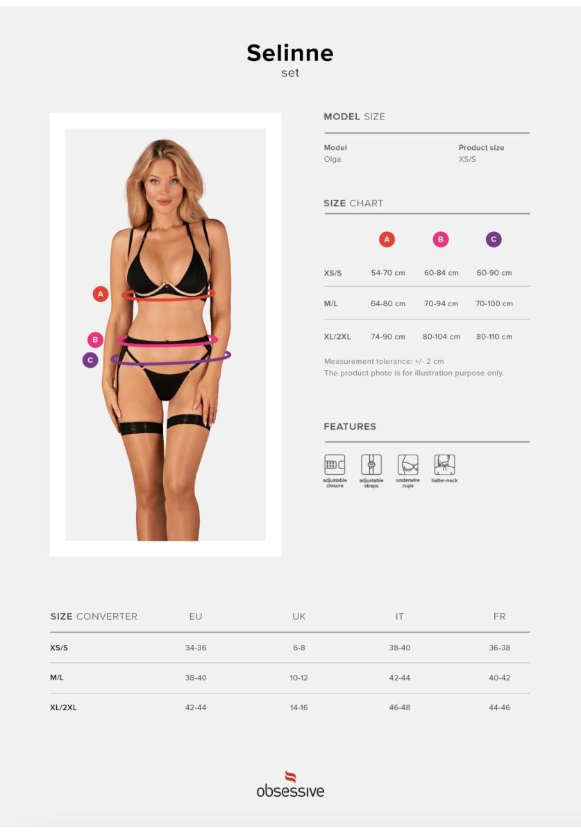 Otwórz się na nowe doznania z kompletem Selinne. Ten pozornie minimalistyczny zestaw ma dużo do zaoferowania. Zerknij tylko na detale i to, jak pięknie podkreśla figurę. Trudno oderwać od niego wzrok, prawda? Przekonaj się sama, na co go stać!