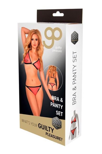 247,00 złA bra & panty set made of red fabric and black latex, from the Guilty Pleasure Printed Datex collection. The firm latex edges of the panty are attached with metal rings at the hips. Also, the latex rims of the bra are attached with metal rings. The bra closes with a clip between the triangle cups. There is a decorative black latex print on one of the cups. The red knitted fabric is semi-transparent. Printed Datex is a combination of natural rubber and elastic knitted fabric. The latex is printed in sexy open patterns on a highly elastic knitted fabric. Because of the flexibility and great extensibility this material does not crack and is very comfortable to wear. Combinable with all GP fetish wear items for the most stunning outfits. Click here for Datex care instructions and size chart