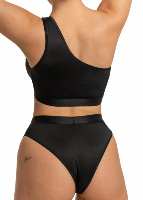 zmysłowy TOP na jedno ramię oraz mocno wycięte FIGI z transparentną tiulową wstawką ze skosa podkreślą urodę kobiecej figury