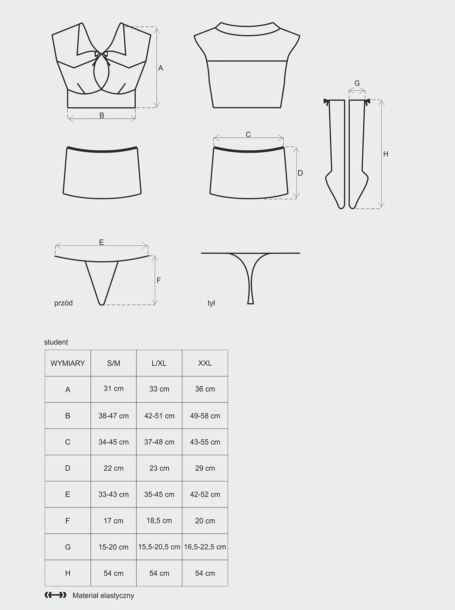 – w komplecie pasujące do całości, proste stringi i podkolanówki