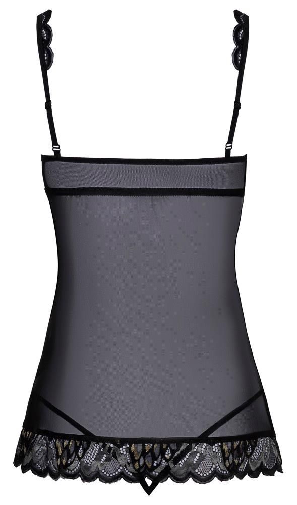 Babydoll & string in a set from kissable. The babydoll is made out of delicate powernet and beautiful lace. It is soft and stretchy for a comfortable fit. The short babydoll is open at the front and is closed with a clip fastener that is hidden underneath the decorative satin bow. The underwired cups and adjustable straps guarantee a perfect fit. The fancy small string is also made out of beautiful lace and is extremely seductive because it has two narrow stretchy straps that come together in the crotch area.