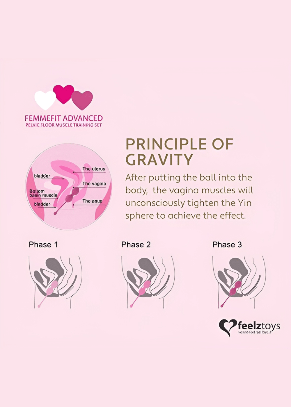 Zaawansowany zestaw do treningu mięśni dna miednicy dla kobiet, które chcą pogłębić swoje doświadczenie z kulkami gejszy. Sofi to elegancki komplet trzech kulek Ben Wa o różnych wagach, stworzony z myślą o kobietach zaawansowanych w ćwiczeniach Kegla. Idealny do regeneracji po porodzie, leczenia nietrzymania moczu oraz zwiększenia intensywności doznań seksualnych.