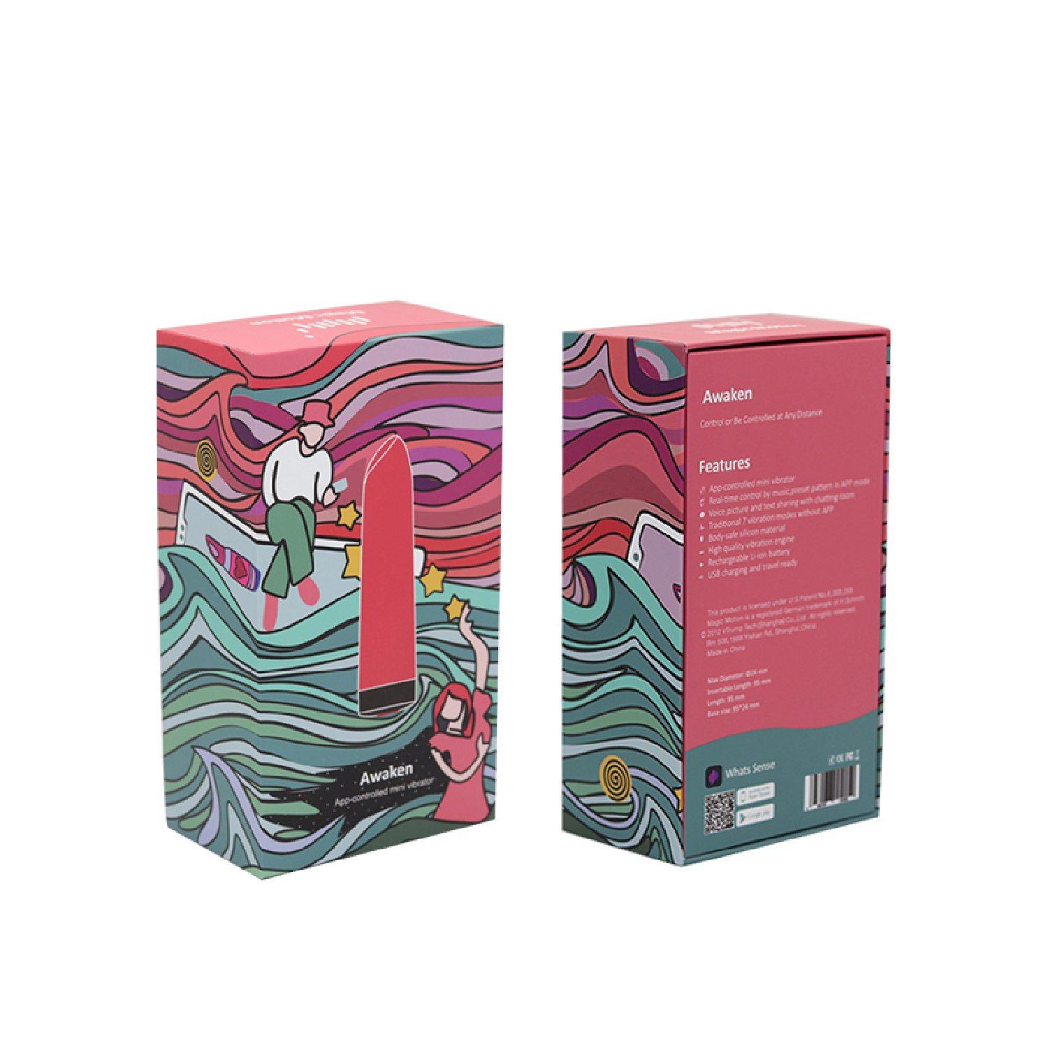 Awaken to przenośny, sterowany aplikacją wibrator typu szminka z miękką, wyginającą się silikonową główką, która dzięki mocnemu silnikowi z łatwością osiąga kobiecy orgazm łechtaczkowy. Kompaktowy, kolorowy, ładowany magnetycznie, w połączeniu z aplikacją Whats Sense zapewnia wstępnie ustawiony tryb wibracji, muzykę, tryby sterowania rysowane ręcznie oraz interaktywne informacje głosowe, obrazkowe i tekstowe podczas zdalnego sterowania.