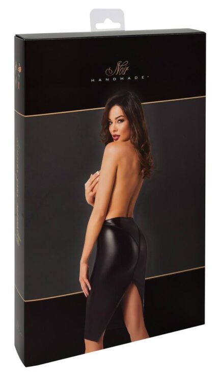 The tight-fitting skirt from Noir is knee-length. It is made out of trendy, black powerwetlook and it has a fancy, 2-way zip at the back. The zip is decorative and sexy. It is soft and stretchy for an extremely comfortable fit.