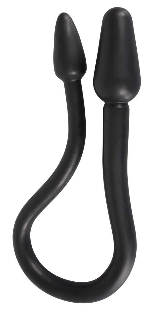 Niezwykle elastyczne podwójne dildo od Rebel z wtyczką na każdym końcu. W przypadku zabaw solo, wkładaj jednocześnie do pochwy i analnie; w przypadku zabaw dla dwojga, każde z Was może sobie zafundować jedną z zatyczek. Piękna jedwabista, śliska powierzchnia. Czarny.