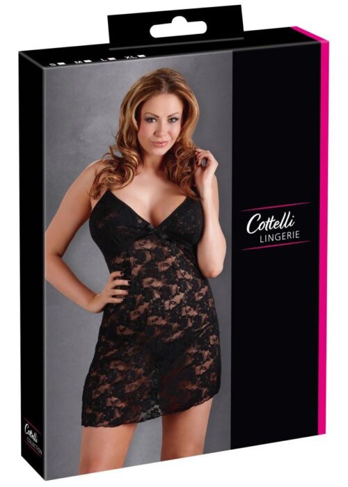 Z tym zestawem jesteś idealnie ubrana na erotyczny wieczór! Podczas gdy spódnica wykonana jest z czarnej powernetu, szerokie zastosowanie koronki do rzęs w górnej części zapewnia szlachetny wygląd – wstawka z powernetu przy dekolcie wzmacnia ten efekt. A dzięki delikatnej przezroczystości koronki, dwa najlepsze argumenty również rozbłysły – co za widok! Ale również widok z tyłu potrafi przekonać, ponieważ negliż posiada mały halterneck do wiązania, a poniżej swobodnego tyłu kontynuowana jest koronkowa wstawka. Kimono zachwyca również przezroczystym materiałem i kolejnym elementem przyciągającym wzrok – zarówno mankiety ramion, jak i szerokie obszycie wykonane są również ze zmysłowej koronki do rzęs i zapewniają tym samym efekt wow. Stringi w komplecie.