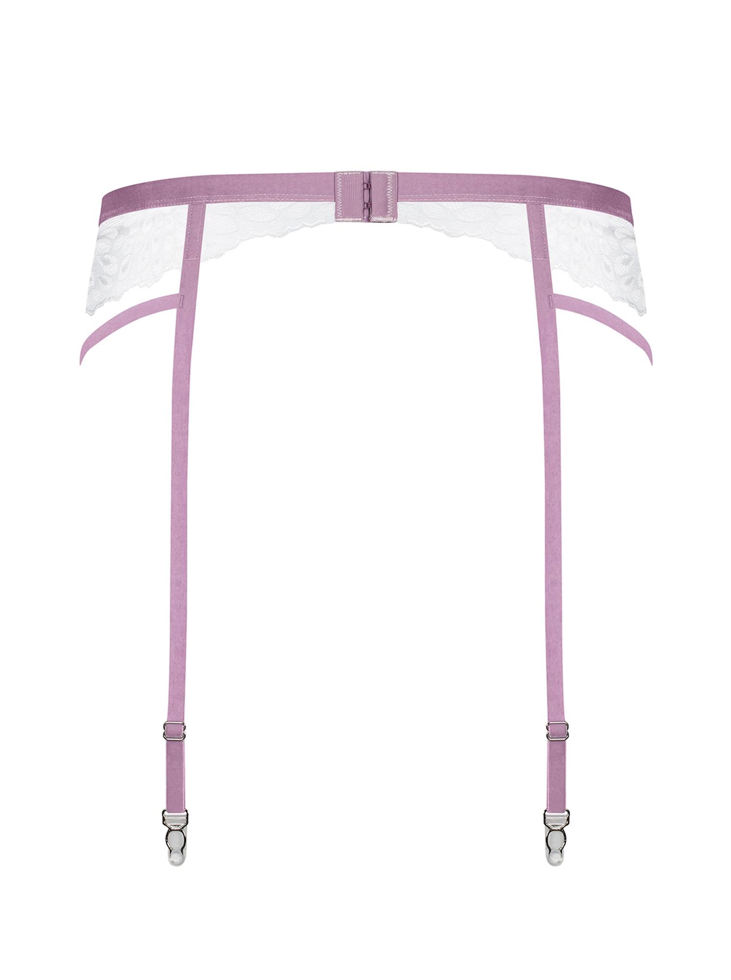– paski do pończoch w liliowym kolorze – kusząco zdobią ciało