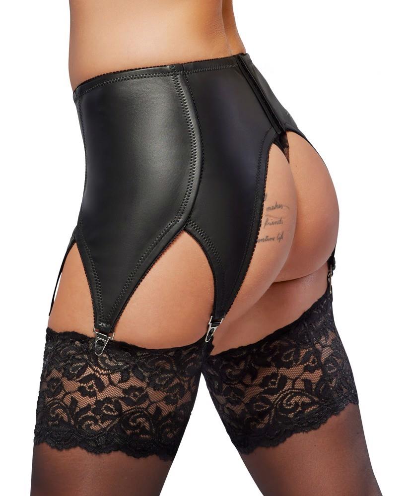 Suspender belt from ZADO made from soft lamb leather. In a retro style with 4 metal suspender straps. With hook fastening at the back.