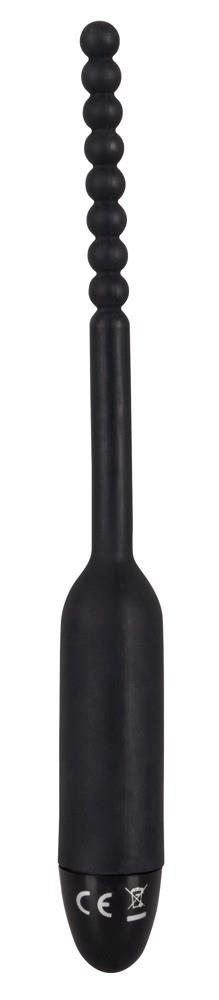 Czarny wibrator dilator z 7 trybami wibracji za naciśnięciem przycisku. Długość całkowita ok. 19 cm, długość pręta 10,5 cm, średnica ok. 8 mm. Materiał: silikon, ABS. W tym baterie z ogniwami guzikowymi.