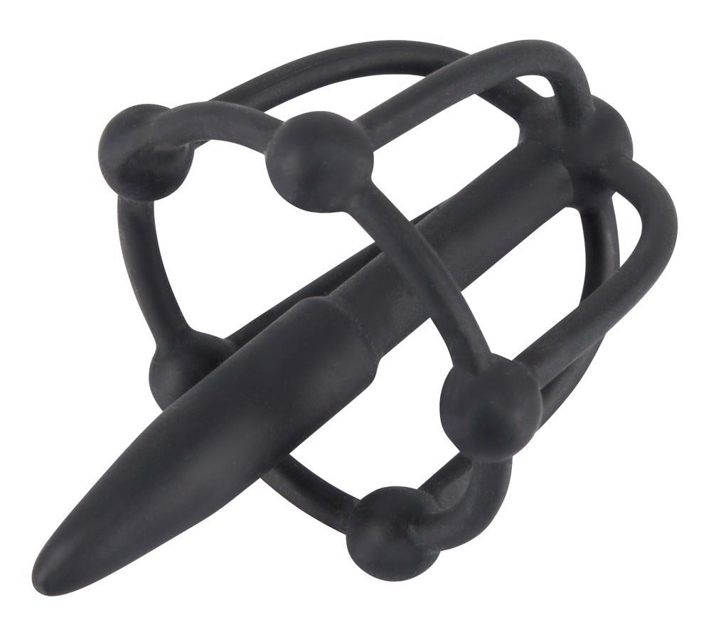 Dylator z kulą korkową i klatką na żołądź z kulami stymulującymi. Pięknie elastyczny, elastyczny i z miękką w dotyku powierzchnią dla łatwego zakładania i komfortowego odczuwania.