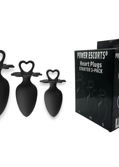 Power Escorts – Heart Plug Anal Starter 3-Pack – S, M & L – Black – quality Silicone – Colour box