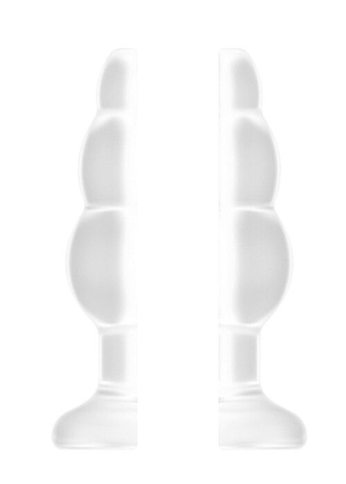 Dymiące, zakrzywione analne dildo o stymulującej strukturze kulki i pierścienia powrotnego. Długość całkowita 13,5 cm, głębokość wsunięcia ok. 10 cm. średnica 1,3 do 2 cm. Materiał: silikon.