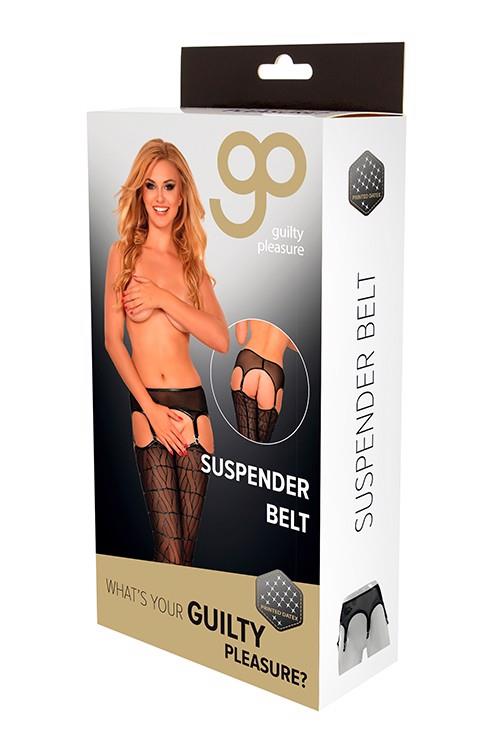 A black suspender belt made of transparent knitted fabric with latex printed along the rims. The 6 latex garters have metal clips to attach suspender stockings. The suspender belt is easy to put on and take off, and comfortable to wear thanks to the stretchy material. This suspender belt from the Guilty Pleasure Printed Datex collection is a great match for the footless thigh highs with latex print. Printed Datex is a combination of natural rubber and elastic knitted fabric. The latex is printed in sexy open patterns on a highly elastic knitted fabric. Because of the flexibility and great extensibility this material does not crack and is very comfortable to wear. Combinable with all GP fetish wear items for the most stunning outfits. Click here for Datex care instructions and size chart