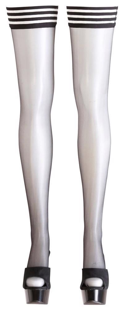 Trzymaj pończochy z sprytnie pasiastą górą. Silikon w środku dla antypoślizgowego dopasowania. 17 den. Certyfikat Oeko-Tex.