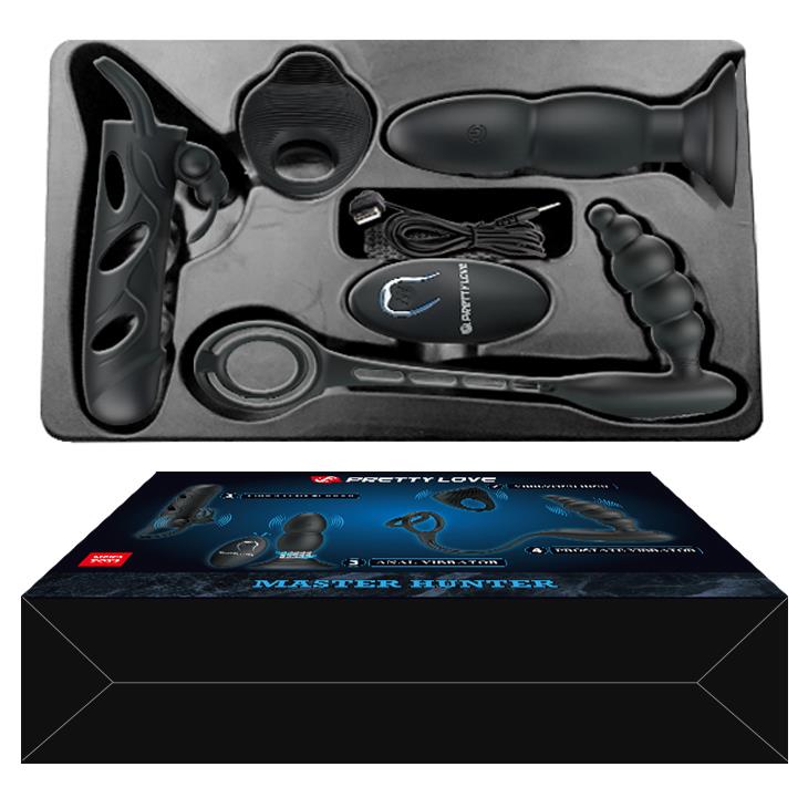 Zanurz się w luksusowej przyjemności i czterokrotnej zabawie z 4-częściową kolekcją Master Hunter. Gotowa i czekająca na uwolnienie potężnej stymulacji, ta rozbrykana czwórka jest idealna do sesji solowych i zabaw dla par. Zaskocz swojego partnera tym pudełkiem z gadżetami i baw się dobrze dla siebie. Ciesz się korkiem analnym, który wibruje i obraca się, wtyczką analną o wielu prędkościach przymocowaną do silikonowego pierścienia, rękawem na penisa z wibrującą kulą króliczą i pierścieniem na penisa napędzanym kulą, aby dać tobie i twojemu partnerowi wibracje wywołujące orgazm. Mając tak wiele do wyboru, będziesz wracać do tego zestawu raz po raz.
