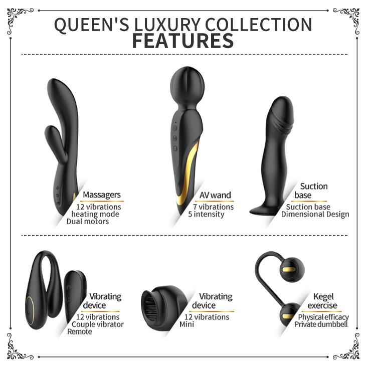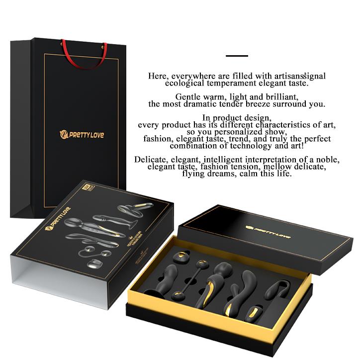 PRETTY LOVE BI-014888H QUEEN’S LUXURY COLLECTON (zestaw klasyczny) Idealny na zabawny wieczór z partnerem. Daj się rozpieszczać naszym 6-częściowym zestawem Golden Black Couple’s Set (QUEEN’S LUXURY COLLECTON — Klasyczny zestaw). Zaskocz swojego partnera tym pudełkiem smakołyków i spędź zabawną noc dla was obojga. Ciesz się niesamowitą stymulacją wewnętrzną różnymi zabawkami i odczuwaj przyjemność przez cały dzień. Dając Tobie i Twojemu partnerowi wibracje wywołujące punkt kulminacyjny, o wiele więcej do odkrycia. Mając tak wiele do wyboru, będziesz wracać do tego zestawu od czasu do czasu.