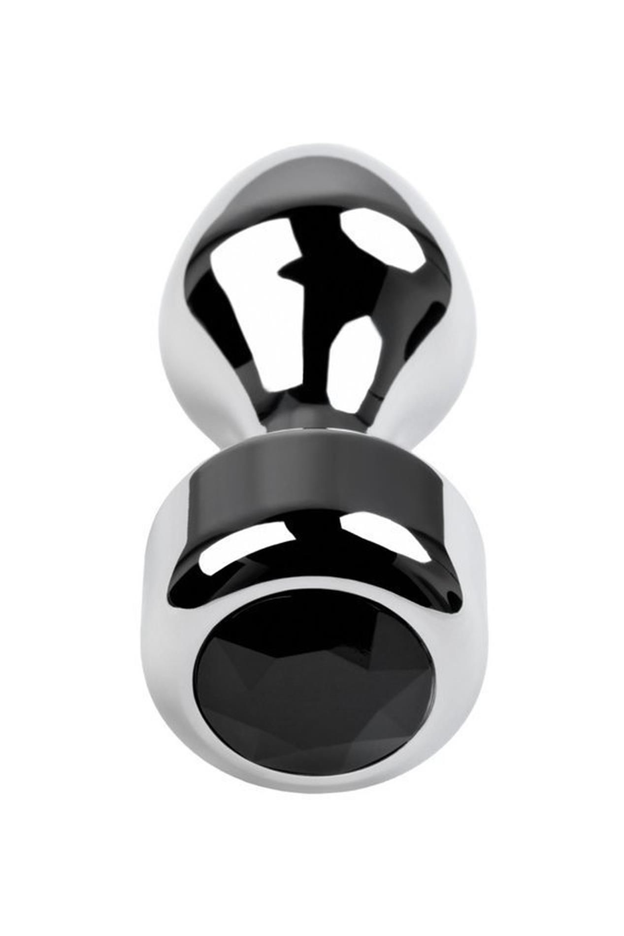 Silver anal plug TOYFA Metal with black round-shaped gem, length 8,2 cm, diameter 2,5-3,8 cm, weight 210 gr