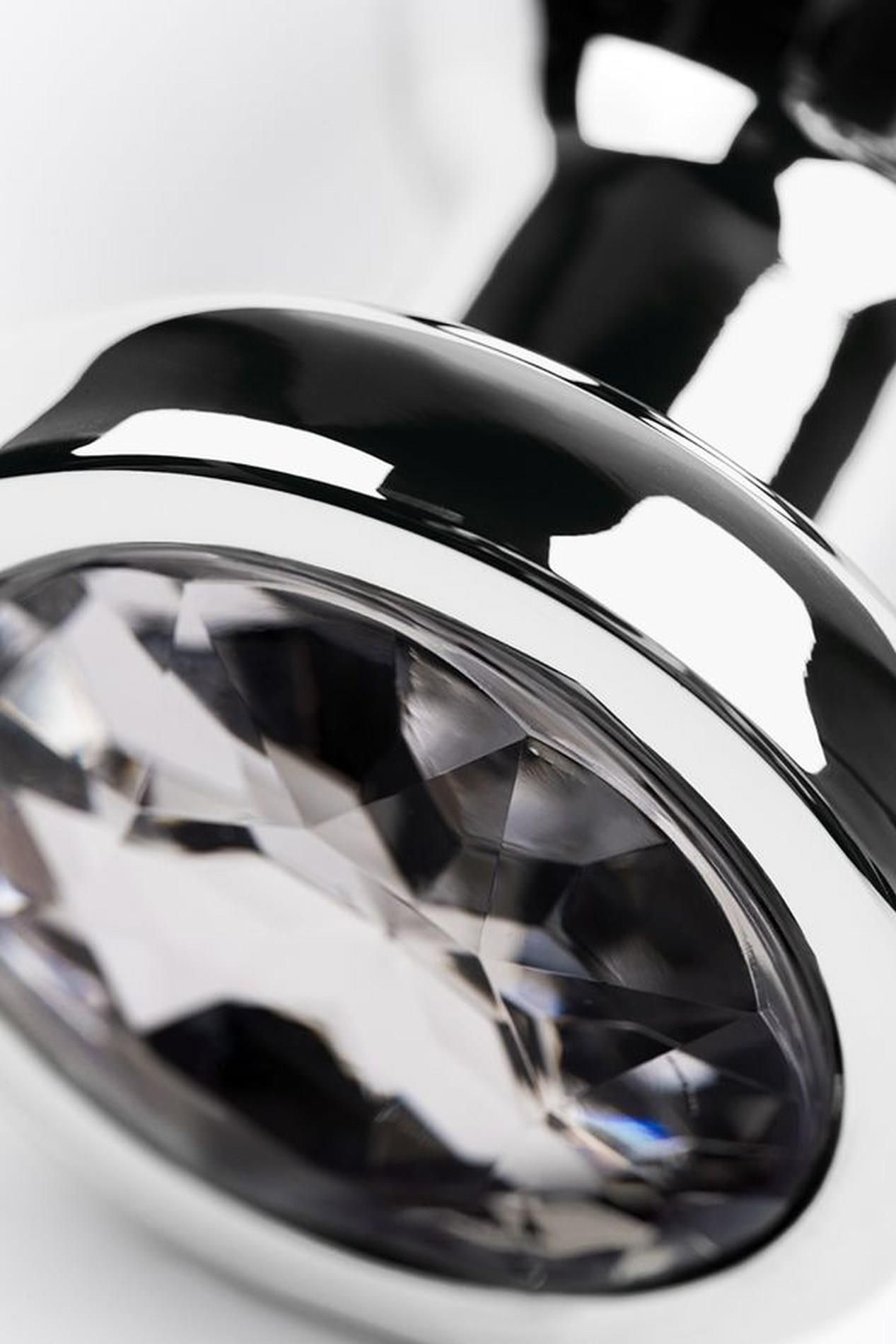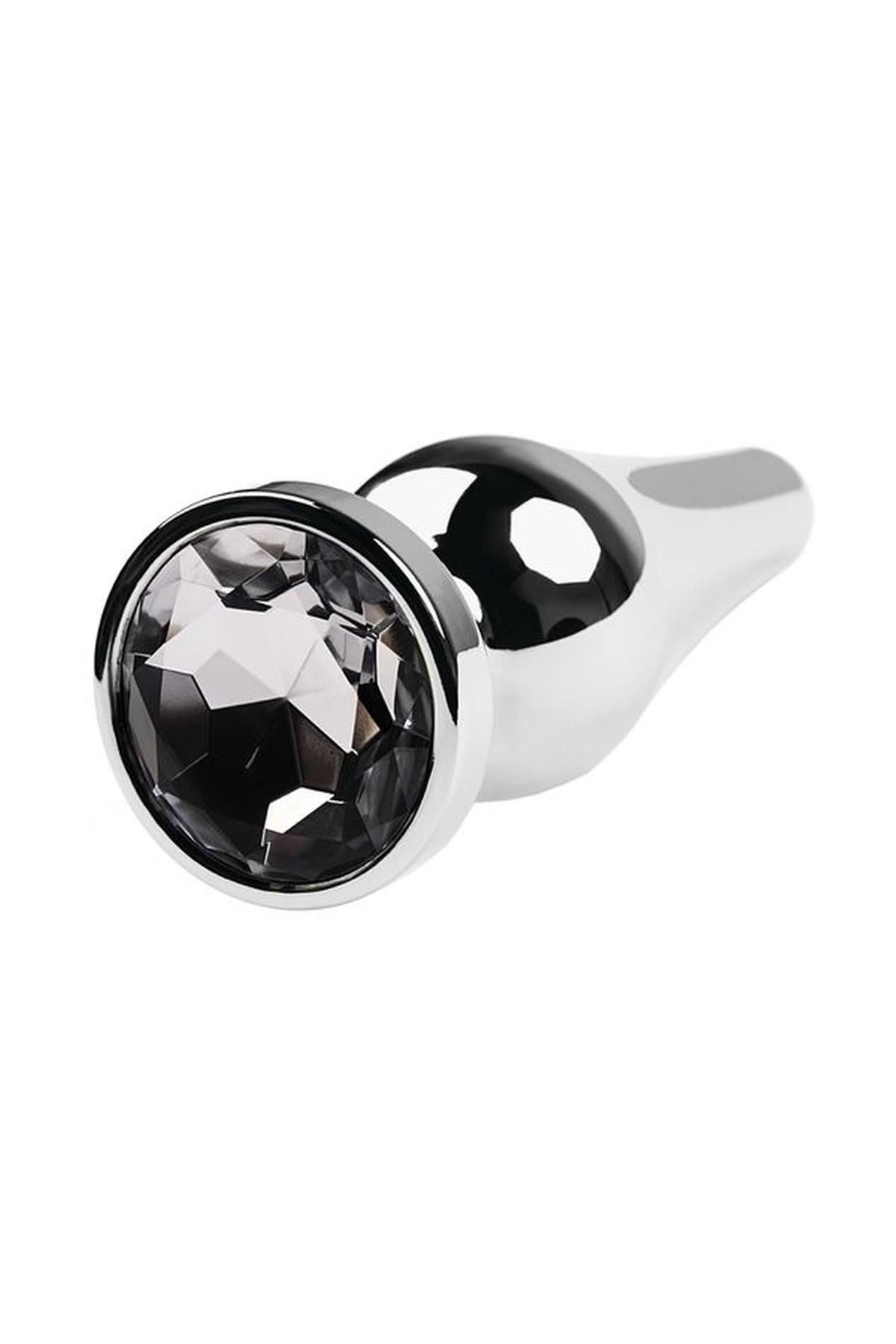 Silver anal plug TOYFA Metal with white round-shaped gem, length 9 cm, diameter 1,5-4 cm, weight 205 gr