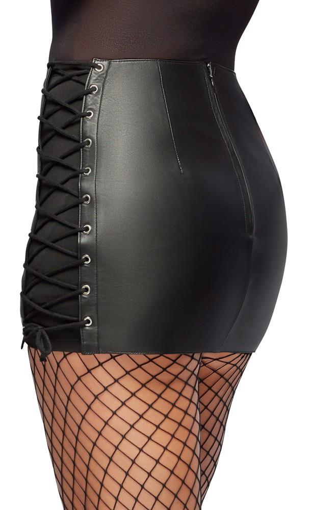 Slim-fit short skirt by ZADO made from soft lamb leather. With a stretch insert at each side and decorative lacing above in silver-coloured metal eyelets. Adjustable laces for a perfect fit. With a zip at the back.