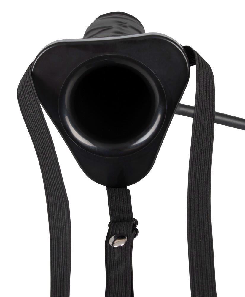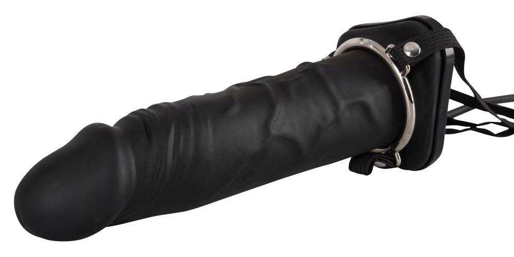Nadmuchiwane, wewnątrz wydrążone i stabilne dildo z indywidualnie regulowanymi paskami. Czarny. Dildo 18,5 cm długości, wewnętrzna średnica˜ 4,2 cm (nie rozciągliwa), zewnętrzna średnica˜ nadmuchiwana do maks. 9 cm. Głębokość wsunięcia Dildo 17 cm. Z zaworem spustowym. Silikon, ABS, lateks, żelazo, poliamid.