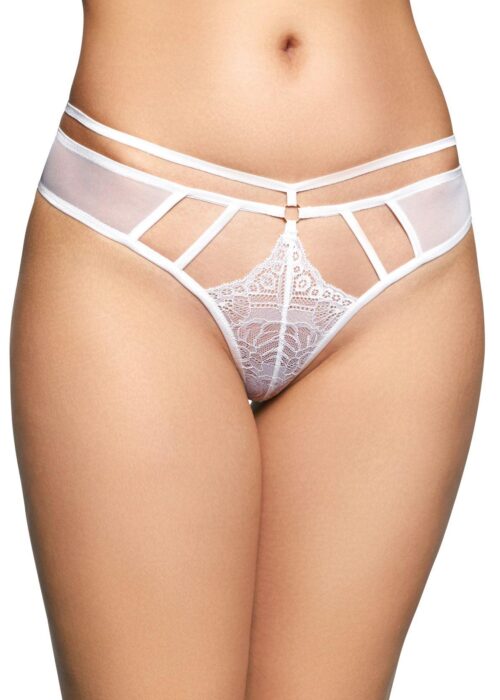 Finezyjne paseczki, subtelna cyrkoniowa ozdoba oraz wycięcia na pupie dodają bieliźnie kokieteryjnego i zmysłowego charakteru. Idealne na wyjątkowe okazje lub kiedy chcesz dodać odrobinę pikanterii do codzienności.