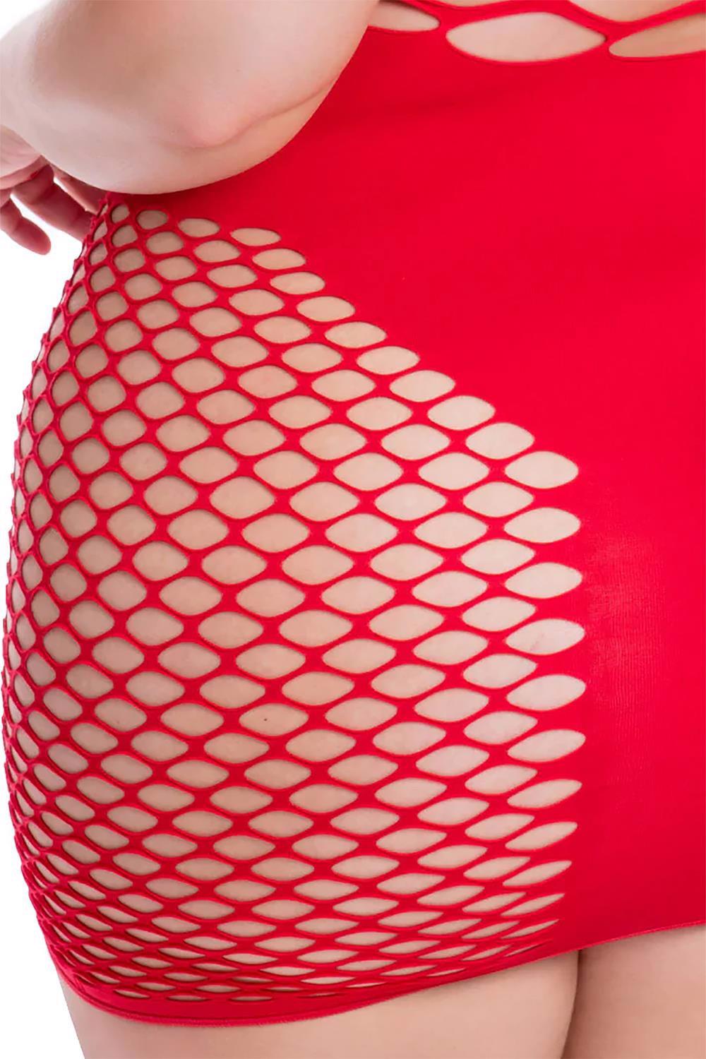 Halter dress with open parts, shaped by fishnet fabric with bigger and smaller openings. The dress caresses your curves and shows off your physical assets.Being good is so overrated, especially when you unleash your inner wild side with the Girl Gone Bad Dress. Take your partner on a seductive ride with a netting design that lets you offer a sly look at your cleavage, hips, and ass! A larger cut-out section lets you flaunt your midriff like a total rebel!Though this dress pushes boundaries and challenges convention, you can opt to wear it in private, or rock it at your favorite nightclub if you want everyone to be slack-jawed and envious of just how bad you really are!Halter dress with tie-up neck stringNetting sections let you tease your cleavage, hips, and assOpen back designMaterial: 95% Nylon and 5% Spandex for a comfortable fitClick here for the Pink Lipstick Size Chart Fabric care Hand wash in cold water Do not dry clean Do not bleach Line dry Do not iron