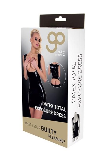 369,00 zł – 407,00 złZakres cen: od 369,00 zł do 407,00 złThis total exposure dress in shiny black Datex has a high backside with a cut-out rear and an open bust. The tight black mini dress has no zipper or buttons, but is still easy to put on or take off thanks to the stretchy nature of the Datex material. A kinky dress for lovers of spanking and exposure, with that exciting latex look but without the sticky sweatiness of latex, from the Guilty Pleasure Fetish Wear collection.Short dress with cut-out rear for spanking or just for exposure. With open bust.Material: Datex (69% Natural Latex / 27% Polyamide / 4% Elastane)Datex is a revolutionary material made of natural rubber latex, printed on an elastic knitted fabric. The result is a very stretchable material with the looks and touch of latex on the outside and the softness and comfort of the stretchy fabric on the inside.Datex is comfortable to wear, it has that exciting look of latex, but not the disadvantage of being sticky and sweaty. It is easy to put on or take off without any additional dressing aids or conditioners. Datex provides great comfort, softness and flexibility, and at the same time the fetish look and touch that make latex so unique and appreciated. Click here for Datex care instructions and size chart