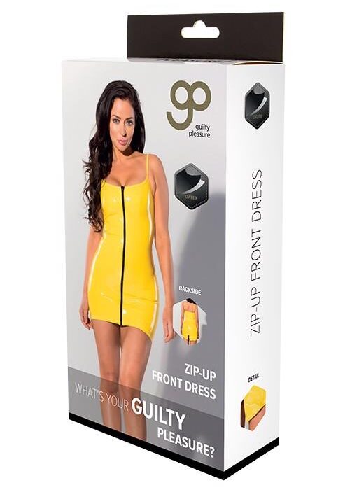 Żółty This Datex mini dress in bright yellow has adjustable spaghetti straps and a front zipper that opens from the top down. The back of this mini dress is longer than the front and has a walking slit. An eye catching dress from the Guilty Pleasure Fetish Wear collection.Mini dress with full front zipper and spaghetti straps.Material: Datex (69% Natural Latex / 27% Polyamide / 4% Elastane)Datex is a revolutionary material made of natural rubber latex, printed on an elastic knitted fabric. The result is a very stretchable material with the looks and touch of latex on the outside and the softness and comfort of the stretchy fabric on the inside.Datex is comfortable to wear, it has that exciting look of latex, but not the disadvantage of being sticky and sweaty. It is easy to put on or take off without any additional dressing aids or conditioners. Datex provides great comfort, softness and flexibility, and at the same time the fetish look and touch that make latex so unique and appreciated.Click here for Datex care instructions and size chart