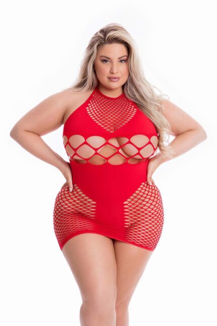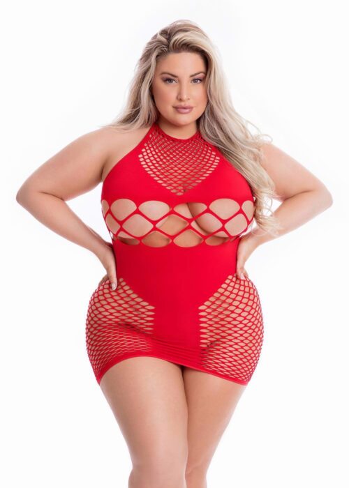 Czerwony Halter dress with open parts, shaped by fishnet fabric with bigger and smaller openings. The dress caresses your curves and shows off your physical assets.Being good is so overrated, especially when you unleash your inner wild side with the Girl Gone Bad Dress. Take your partner on a seductive ride with a netting design that lets you offer a sly look at your cleavage, hips, and ass! A larger cut-out section lets you flaunt your midriff like a total rebel!Though this dress pushes boundaries and challenges convention, you can opt to wear it in private, or rock it at your favorite nightclub if you want everyone to be slack-jawed and envious of just how bad you really are!Halter dress with tie-up neck stringNetting sections let you tease your cleavage, hips, and assOpen back designMaterial: 95% Nylon and 5% Spandex for a comfortable fitClick here for the Pink Lipstick Size Chart Fabric care Hand wash in cold water Do not dry clean Do not bleach Line dry Do not iron